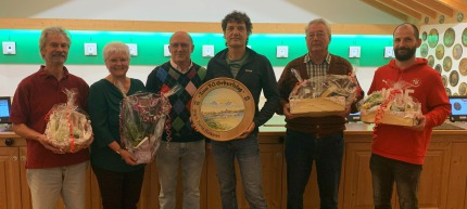 von links: Alfred Schwangler, Irene Gaßner, Jubilar Hans Rosmer, Scheibengewinner Harald Lage, Helmut Bauer und Johann Rosmer jun.